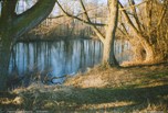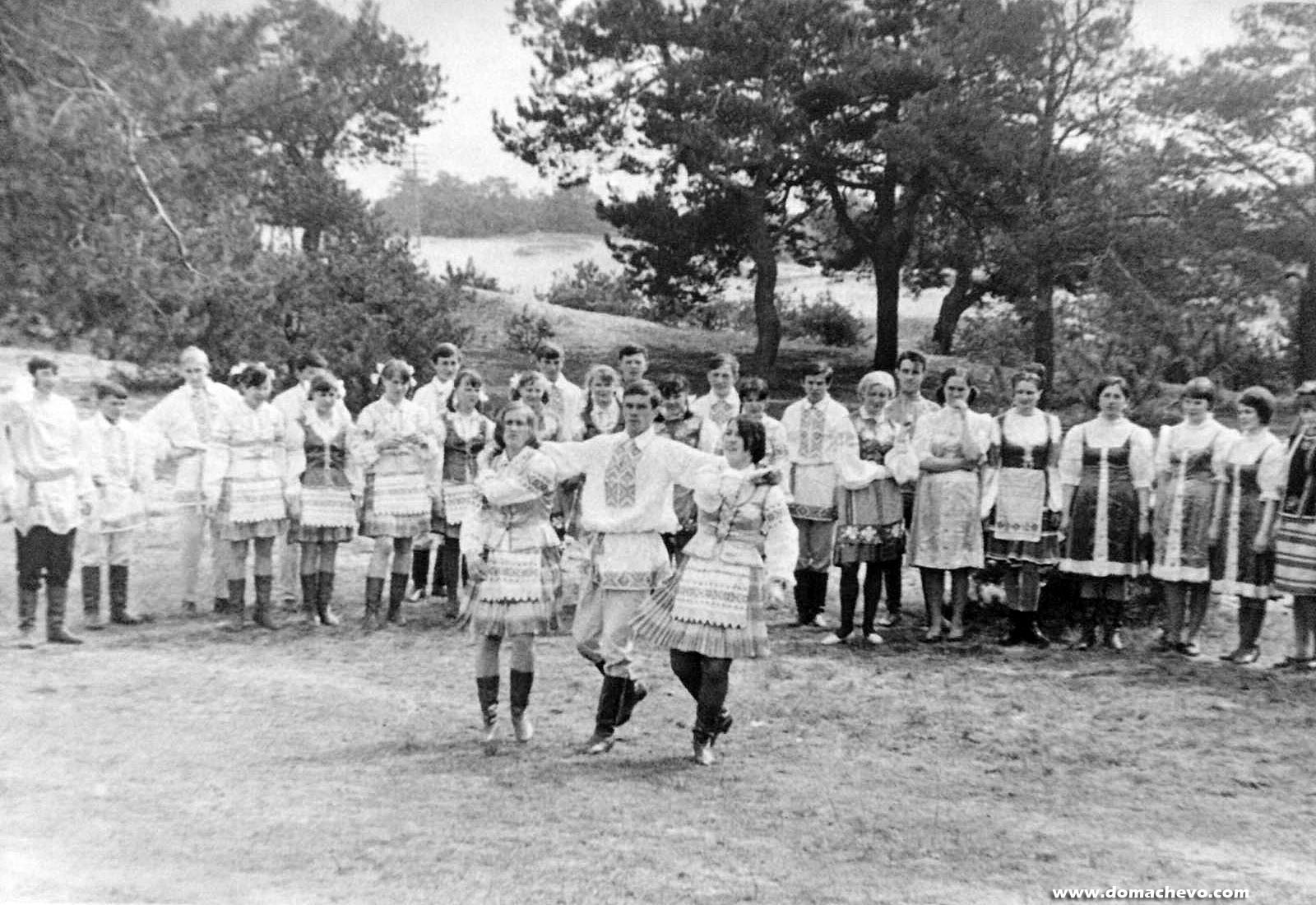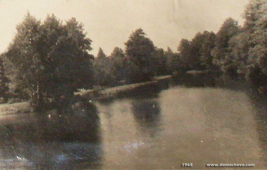 Старый Бугъ "Домачевское озеро" 1965 г. Слѣва видно начало "пляжа". Въ концѣ 1990-х на "Домачевскомъ озерѣ" перестали купаться изъ-за ряски.
