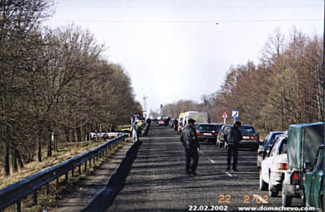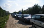 Очередь на таможню у въѣзда въ Домачево во время реконструкціи таможни 17.08.2006 г.